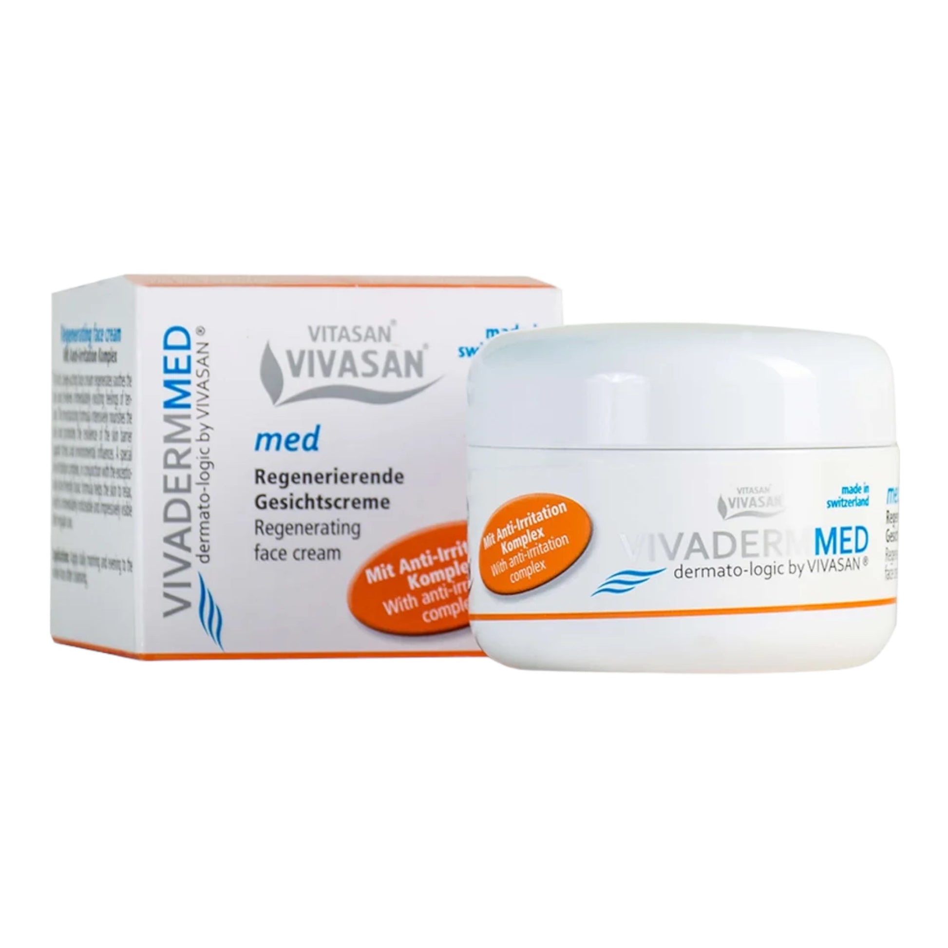 Vivaderm Med dermato-logic by VIVASAN is an advanced face cream that effectively regenerates and soothes the skin. Its rich, deep-acting formula relieves existing feelings of tension and intensively nourishes the skin, promoting resilience against stress and environmental factors. With a unique anti-irritation complex and a skin-friendly base, this cream helps the skin to relax, resulting in noticeable and impressive improvements after regular use. Free of allergens, parabens, and paraffins.